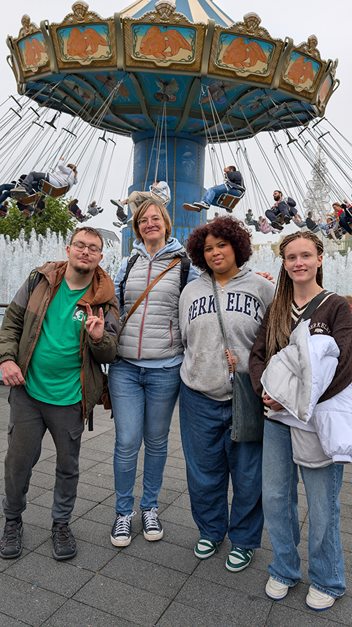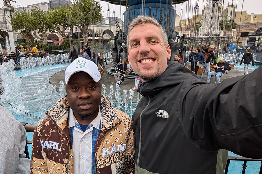 Einige von uns sind den ganzen Tag nur Achterbahn gefahren, andere amüsierten sich beim virtuellen Abschießen von Mäusen in einer Großbäckerei oder in den Akrobatik- und 4D-Shows. 4D heißt „vier Dimensionen“. Man musste eine spezielle Brille aufsetzen, um in drei Dimensionen schauen zu können: Da sprangen einem fast die Mäuse ins Gesicht. Die vierte Dimension wurde durch Druckluftdüsen, Wasserspritzer und rüttelnde Stühle erzeugt, so dass diese Kino-Erlebnisse am ganzen Körper spürbar wurden.