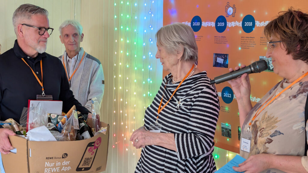 Vorstand Thomas Preuß blickte kurz zurück auf die Gründung des Kölner Kreidekreises durch Edeltraud Preuß und ihre Familie im Jahr 2006 sowie einige historische Meilensteine, insbesondere auf die zuletzt zahlreicher gewordenen Ehrenamtspreise und das Wachstum des Vereins. Aktuell zählt der Kölner Kreidekreis über 170 Mitglieder und betreut mehr als 60 Patenschaften. Vorstände und Geschäftsführung dankten Edeltraud Preuß für ihren langjährigen Einsatz und ihre Inspiration, die so vielen jungen Menschen geholfen habe. Als Zeitstrahl mit kurzen Texten und Fotos aufbereitet, hingen wichtige Momente der letzten 20 Jahre als großes Banner an der Wand.