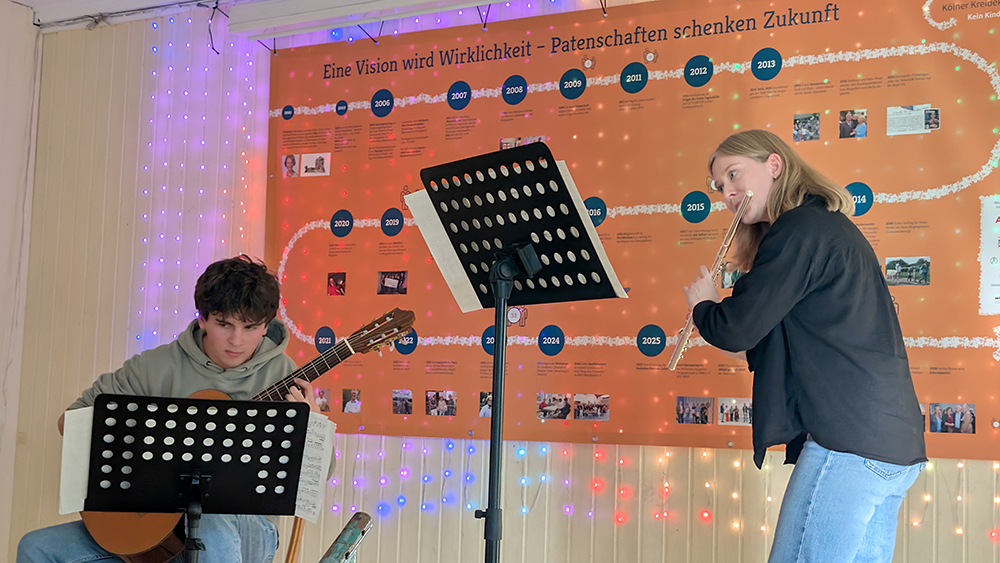 Den musikalischen Schlusspunkt des Programms setzen Lea Hüttemann an der Querflöte und Felix Reckers an der Gitarre, unter anderem mit einer Komposition von Maurice Ravel.